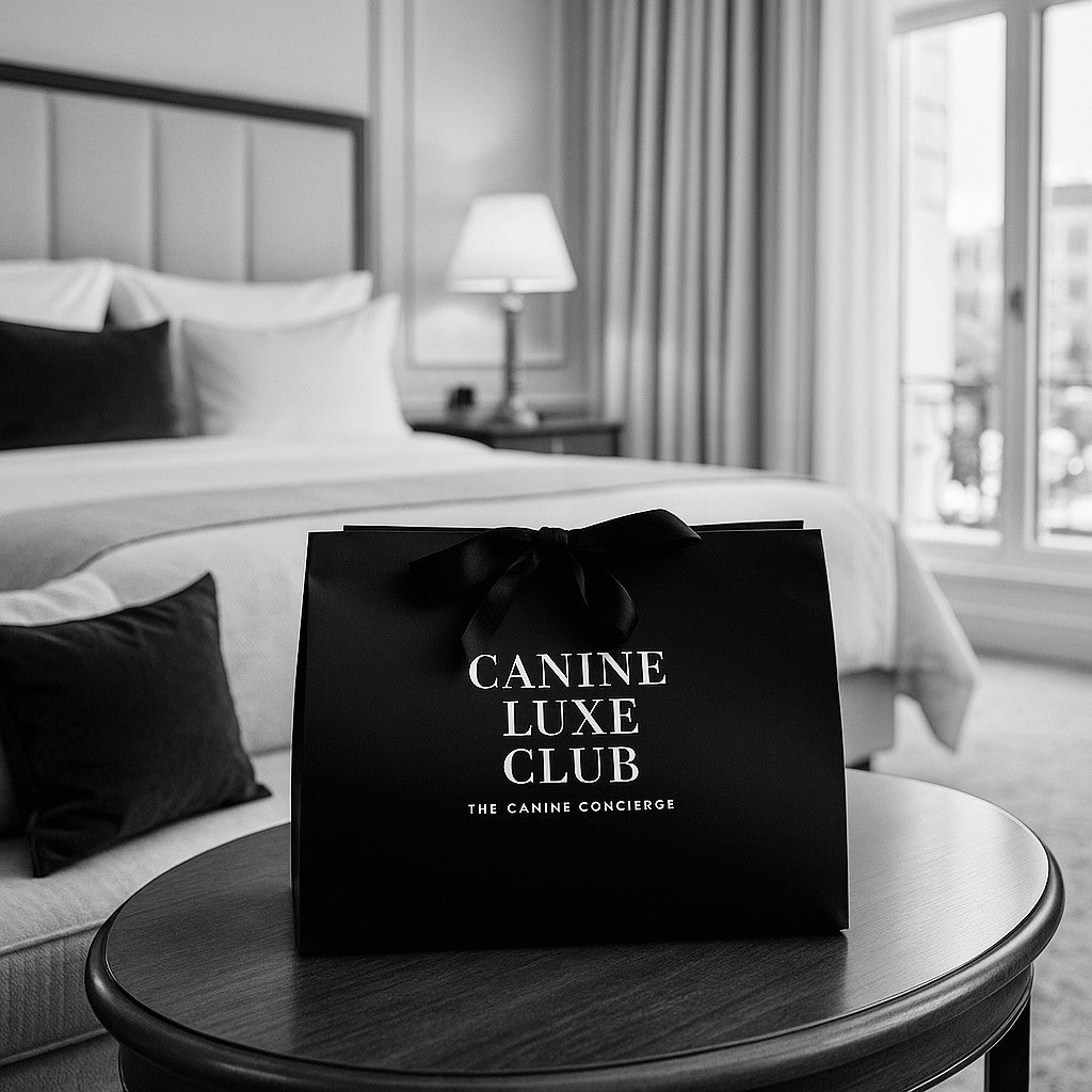 Each Canine Luxe Club Welcome Bag is a curated gesture of refinement — a collection of elegant essentials created to delight discerning guests and their loyal companions. Every element reflects our signature blend of craftsmanship, comfort, and understated sophistication.